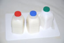 Milk Blue = full fat. Green = semi-skimmed. Red = skimmed. |