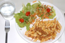 Portion control: pasta and salad Pasta and salad: a good lunch-size portion. |