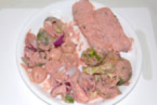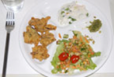 Portion control: pakora and salad Pakora and salad: a good lunch-size portion. |