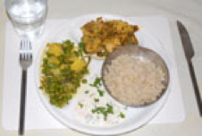 Portion control: chicken curry with rice Chicken curry, vegetables and rice: a good lunch-size portion. |