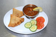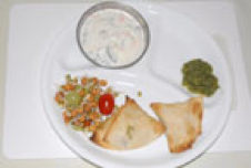 Samosas with side salad A great lunch or snack portion, but remember that some chutneys and pickles contain a lot of salt and oil. |